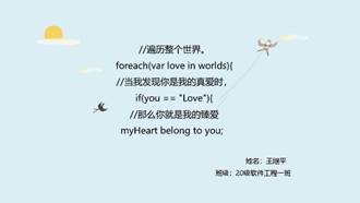 “心”三行情诗征集活动覆盖全体计通学子,通过邮箱投稿的方式在线征集优良的诗歌作品。投稿的诗歌作品中涌现了一大批文字功底扎实、情感丰富的优秀作品。比如用心表达青春懵懂的爱意,表达疫情期间的乐观和豁达,感叹时光飞逝劝少年惜时,抑或是用程序代码演绎内心情感,凸显计通学子特有的浪漫。