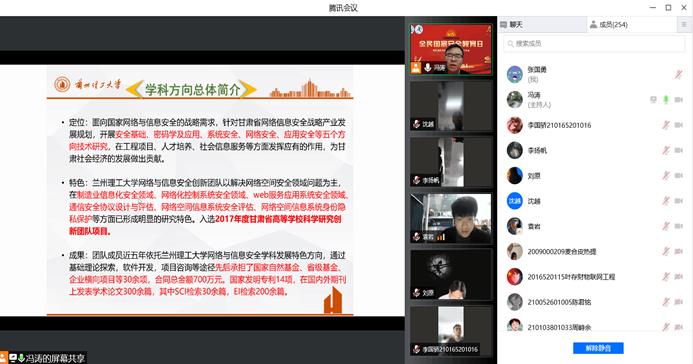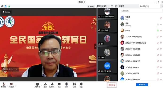 2022年4月15日第七个全民国家安全教育日。根据《甘肃省教育厅关于开展2022年全民国家安全教育日普法宣传活动的通知》文件精神和学校安全与应急处统一安排,计算机与通信学院于4月14日线上召开“4·15全民国家安全教育日”—网络空间安全专题讲座。会议邀请计算机与通信学院院长、博士生导师冯涛教授为师生做报告。会议由学院党委副书记陈育苗主持,学院三百余名师生参加讲座。