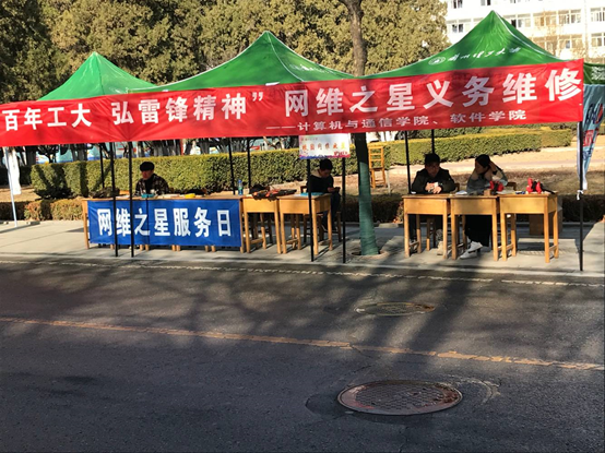 在老师同学的一片好评声中,由计通学院、软件学院举办的以“继承发扬雷锋精神,弘扬传统文化,助力四化建设,开展志愿服务,普及知识,服务校园”为主题的“庆百年工大 弘雷锋精神——网维之星志愿服务活动”落下帷幕!此次活动于2019年3月12日开始,3月17日结束。活动期间,社团同学在本部七号楼和后家属院设点,免费进行电脑维修,用同学们的专业知识去帮助学校的师生解决电脑难题