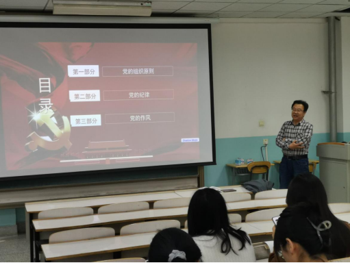 4月11日,学院党委书记高国礼在敦雅楼C301以“中国共产党的组织原则、纪律和作风”为题,为学院第73期201名入党积极分子上专题党课。高书记结合当前学习贯彻习近平新时代中国特色社会主义思想和党的二十大精神体会,向培训学员们讲述了中国共产党在长期的革命、建设和改革实践中形成的严格的组织制度,严明的纪律和优良的作风。