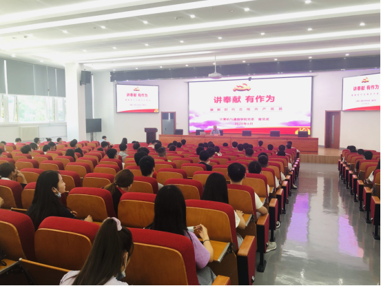 学院党委书记曾贤虎为党员同志讲了《讲奉献、有作为——做新时代合格共产党员》的专题党课。曾贤虎书记从奉献责任担当是党员的基本素质、新时代对党员提出新要求、如何在实践中落实党员的奉献责任担当、高扬理想信念旗帜 永葆共产党员本色等四个方面做了讲授,结合新冠疫情防控,结合十八大以来的党和国家建设巨大成就,教育引导党员同志要充分认识中国特色社会主义指导优势,要不忘初心、牢记使命,进一步增强“四个意识”,坚定“四个自信”,做到“两个维护”,进一步锤炼忠诚干净担当的政治品格,将共产主义信仰、个人道德修养与人生经历、社会实践相结合,让共产主义信仰在学习中树立、在实践中检验。