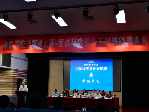 由教育部高等学校计算机类专业教学指导委员会、教育部高等学校软件工程专业教学指导委员会、教育部高等学校大学计算机课程教学指导委员会及全国高等学校计算机教育研究会共同举办的第三届“中国高校计算机大赛-团体程序设计天梯赛”全国总决赛于2018年3月31日在全国31个赛点同时举行,我院共获4项省级奖项。大赛组织委员会于5月20日在浙江大学举行了颁奖典礼,同时举办了高校程序设计能力培养研讨会。我院李睿教授和王旭阳教授受学院委派参加了颁奖典礼并进行了研讨。