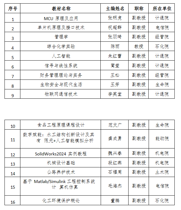 表 2 2024 年度兰州理工大学红柳一般校级规划教材立项建设名单