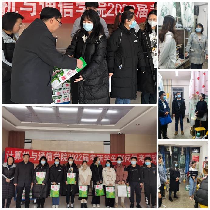 随着考研的日子越来越近,备考气氛愈加浓烈,为鼓励考研同学一鼓作气、继续奋战,计通学院院领导班子和辅导员于近期分别深入学生宿舍及自习室看望考研学生,为学院参加2022年全国硕士学位研究生招生考试的学生送去温暖与关心。
