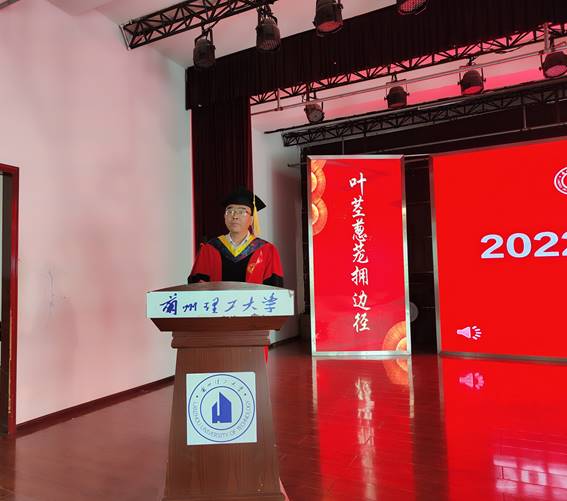 下午14:00,毕业典礼在庄严的国歌声中正式开始。学院院长冯涛致毕业寄语,代表学院向2022届全体毕业生表示热烈的祝贺,希望毕业生们心系母校,秉承初始之心、坚守理想信念,前程似锦。研究生毕业生代表包海著同学在发言中回顾入校以来的过往历程,表达了对母校、学院培养的感恩之情,在离别之时真挚祝愿母校蓬勃发展、再创辉煌。在校生代表余楠同学表达了对学长学姐们离校的不舍以及衷心的祝福。学院党委书记高国礼为2022届甘肃省优秀毕业生代表颁发荣誉证书,为校友联络员颁发聘书,希望他们继续砥砺前行,同时关心和支持母校发展,常回母校看看。典礼最后,学生代表向老师献花,感恩学校和老师的辛勤培养。伴随着在校生献唱的《凤凰花开的路口》,此次学位授予仪式圆满落下帷幕。