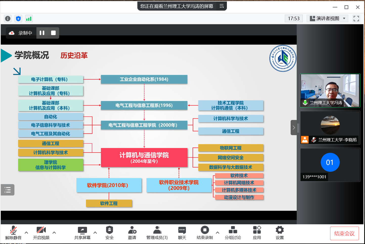 2022年7月1日,计通学院招生研究生河西学院招生宣讲会成功举办,会议由河西学院吴建军院长主持,由学院冯涛教授主讲,参会人员还有李晓旭教授,以及河西学院的计算机科学与技术、网络工程专业的师生共100余人参会。会议通过腾讯会议在线方式开展。