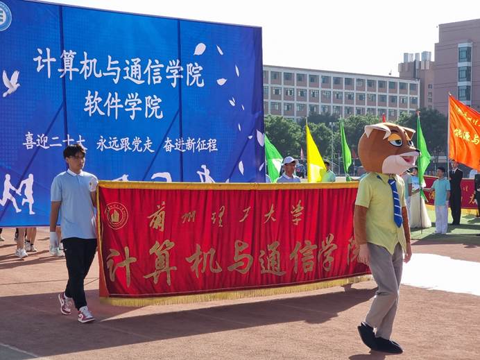 愉快的歌声,轻快的脚步,和学院师生矫健的身影成为这次运动会在同学们心中挥之不去的记忆。计算机与通信学院代表队昂首阔步地向主席台走来,整齐的队伍,矫健的步伐,以计算机语言完成的“喜迎二十大,奋进新征程”祝语,向全校师生展现了计通学子的特色与风采。