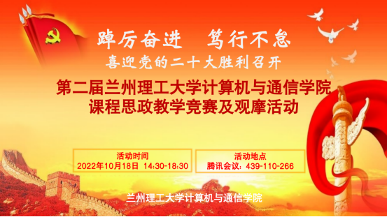 在二十大胜利召开之际,为落实立德树人根本任务,不断加强课程思政内涵建设,引领广大教师实现“知识传授”和“价值引领”有机统一,10月18日下午,计算机与通信学院通过腾讯会议平台,以主题党日活动的形式举行了2022年院级“课程思政教学竞赛”。来自全院各系部的7名教师参加了此次教学竞赛。经过激烈角逐,张明虎、张墨逸两位教师脱颖而出,将代表学院参加学校比赛。