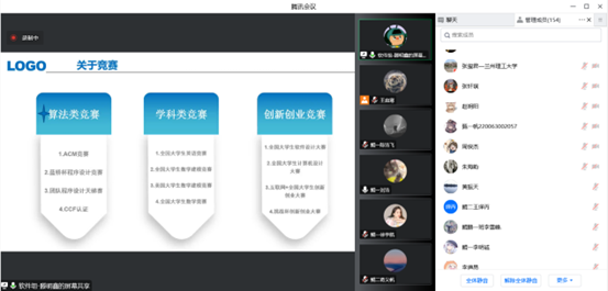 11月6日上午9:00,计算机与通信学院于线上成功举办了22级鲲鹏班学业规划经验交流会。计通学院副院长张玺君副院长、软件工程系主任高玮军、2022级鲲鹏1班班主任张其文、2022级鲲鹏2班班主任顾群、软件工程系教师柯铭等教师、2022级鲲鹏班所有学生、2022级计算机与通信学院其他专业学生代表、19级优秀学生代表参加本次交流会。本次活动由2022级鲲鹏2班副班王启寒、2022级鲲鹏1班副班陈浩飞主持。