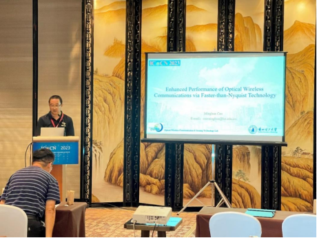 在此次大会中,计通学院曹明华教授受邀作了题为《Enhanced Performance of Optical Wireless Communications via Faster-than-Nyquist Technology》的特邀报告;王惠琴教授和张留堡同学作了题为《BER Performance Analysis of O-OFDM-IM System Under Non-ideal Conditions》的口头报告;赵嘉晨同学在空间通信、导航和跟踪分会场作了题为《An improved target detection algorithm of Lidar point cloud in networked vehicles》的口头报告报告;王瑞同学作了题为《An End-to-End Autoencoder For FSO System Under Unknown CSI Scenarios》的海报展示,并回答了专家学者和同学们的提问。