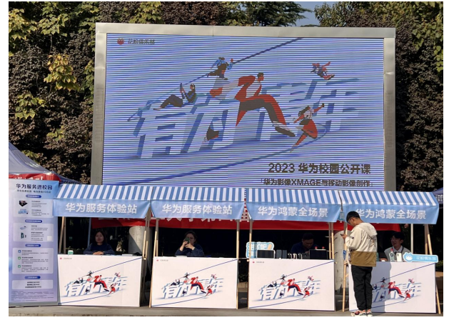 课后,于红柳广场设置了全场景体验、华为服务环节,活动现场引入了手机、平板、音频、等HarmonyOS智慧全场景产品,让学生现场实操移动影像创作,并且现场为同学提供免费贴膜服务、手机电脑清洁服务。