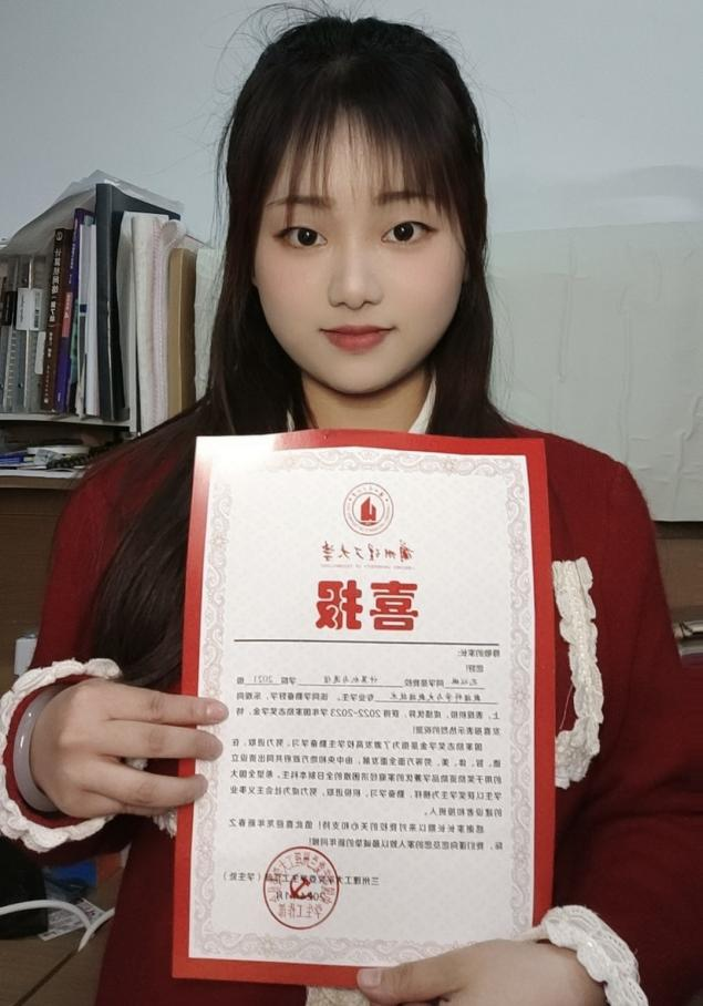 2022级软件工程鲲鹏一班的大数据孟笑乐说:很荣幸在经历了一年的认真学习后能获得国家奖学金 ,也非常感谢老师、朋友、同学们的付出和帮助,这份礼物不仅是对本人综合能力的肯定,更代表着师长们的信任。行则将至,道阻且长,我始终相信幸运会眷顾每一个努力的人,前路漫漫亦灿灿,现状如何倒不要紧,重要的是要有向阳而生的生命力,坚持做平凡的事就可以成为一个不平凡的人。(撰稿:焦婷婷;初审:来明展;终审:高国礼)