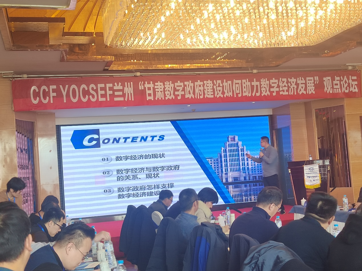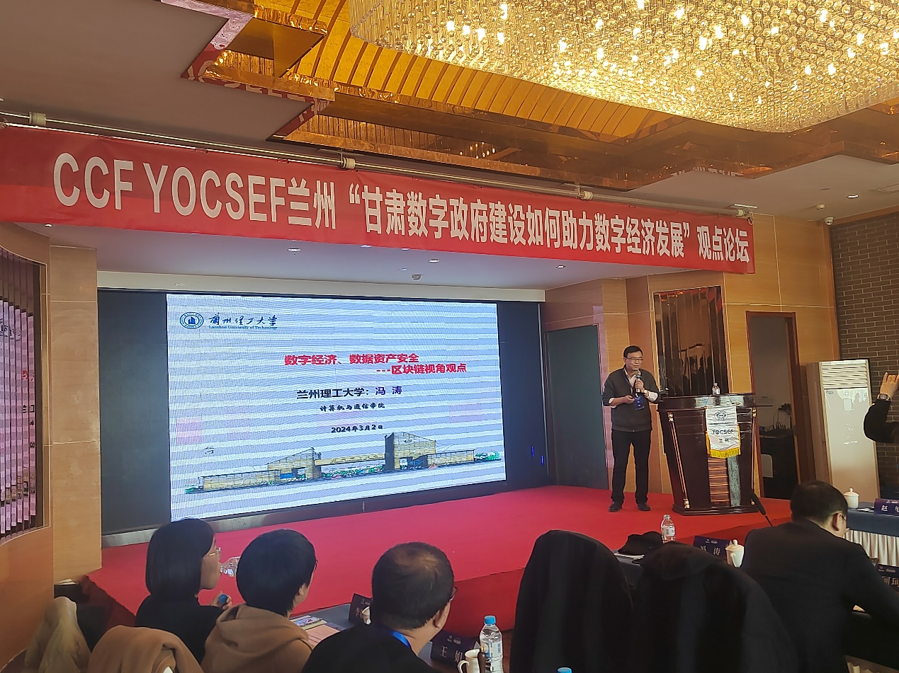 2024年3月2日下午,由计通学院承办的CCF YOCSEF“甘肃数字政府建设如何助力数字经济发展”观点论坛在白云宾馆成功举办。本次论坛围绕数字政府建设中公共数据流通的挑战、数据共享过程中数据要素的安全、数据要素在甘肃数字经济发展的作用等方面进行讨论。论坛邀请到了国家级青年人才项目入选者、西安交通大学赵玺教授、杭州数梦工厂有限公司甘肃公司总经理李仙龙、计算机与通信学院院长冯涛教授作学术报告。来自全国高校和企业的50余名学者参加了论坛,并进行思辨讨论。