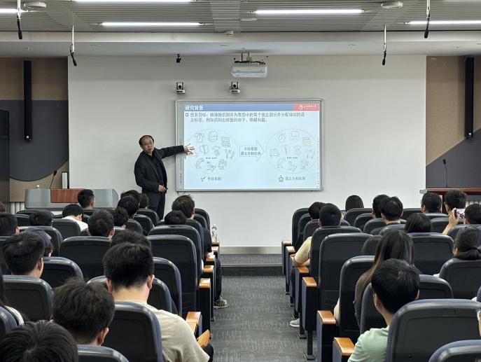 此次报告会的题目是:手绘草图语义分割方法研究,马占宇教授介绍手绘草图语义分割的背景、难点与挑战、方法分类,以及相关研究的最新成果。他强调手绘草图语义分割任务是人工智能领域的重要研究方向之一,对它的研究能够促进人机交互技术的发展,使得计算机能够更好地理解人类的绘图和视觉表达,为设计、艺术创作、教育等多个领域提供更自然和直观的人机交流方式。