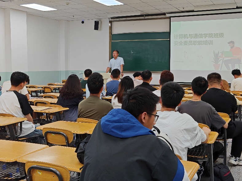 计算机与通信学院于5月28日举行了班级安全委员职能培训会,旨在强调学生综合发展与安全的重要性,并且共同讨论应对校园安全问题的策略。学院党委副书记来明展为同学们指明了班级安全委员的职责,共同为营造一个安全、和谐的校园环境而努力。