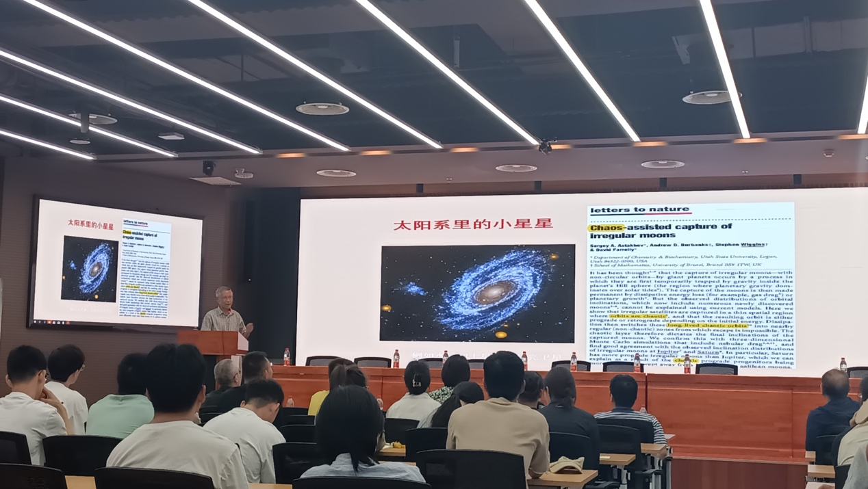 之后,陈关荣教授分享了相关数学家和天文学家对混沌数学理论诞生的研究贡献,深入介绍了连续混沌的基本特征和判定,即不发散、不收敛和非周期特征。还从中国诗词等历史文化的角度,分享了古人对混沌现象和宇宙的认识、理解和表达。最后,陈关荣教授提出了混沌理论研究和应用所面临的新问题,新思路,以及如何应用混沌理论解释实际系统,如宇宙和太阳系中的非线性、非定常和非周期行为的表现形式和复杂现象。