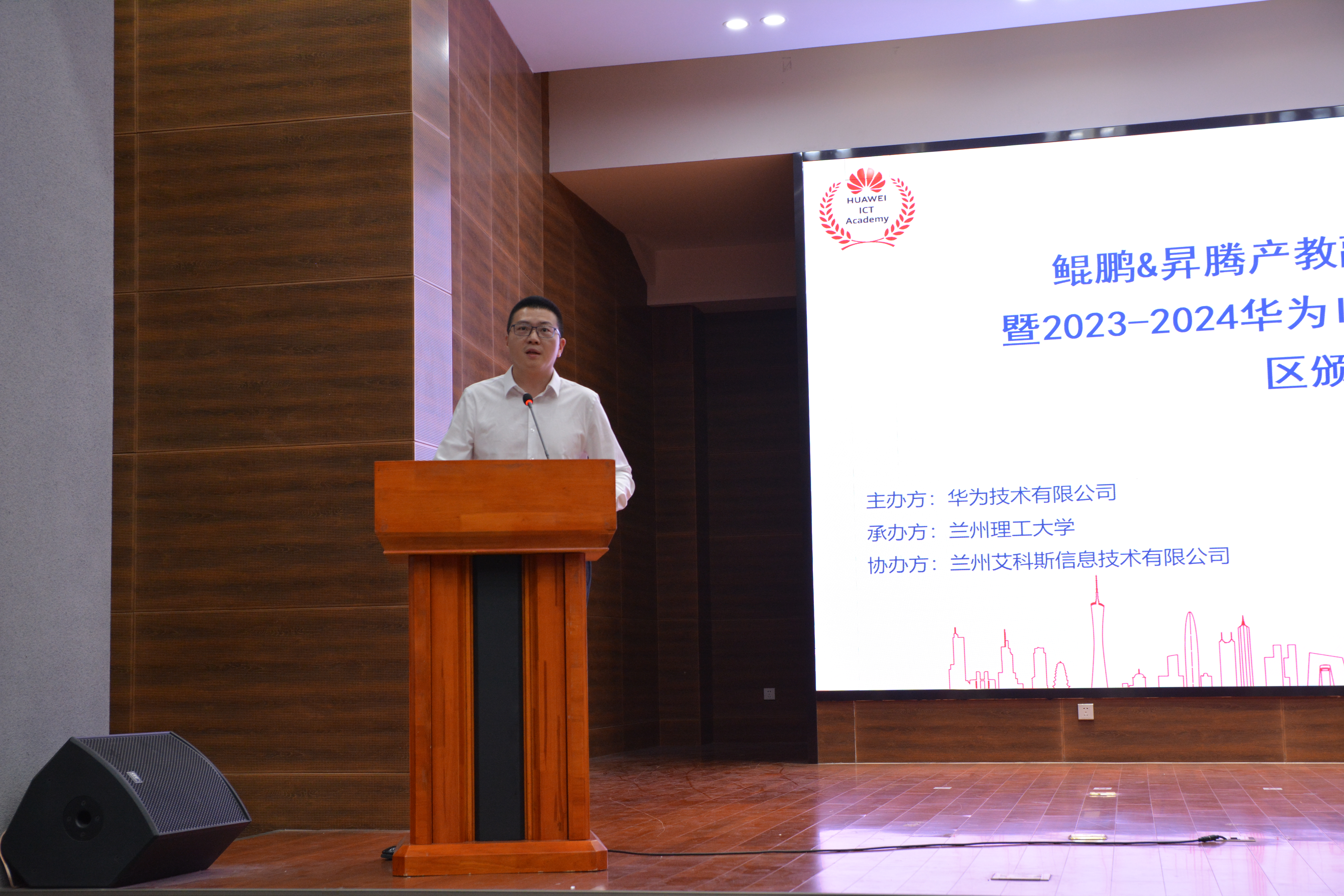 6月14日下午,计算机与通信学院联合华为技术有限公司在我校彭家坪校区图书馆106学术报告厅举行鲲鹏&昇腾产教融合育人基地项目授牌暨2023-2024华为ICT大赛颁奖仪式。学校党委常委、副校长韩建平、教务处处长张清辉、华为甘肃政企副总经理胡寅、华为甘肃产业发展与生态部总经理杨春波、计算机与通信学院领导班子成员、软件工程系和通信工程系负责人,以及2023-2024华为ICT大赛获奖学生代表和部分师生代表参加了活动。