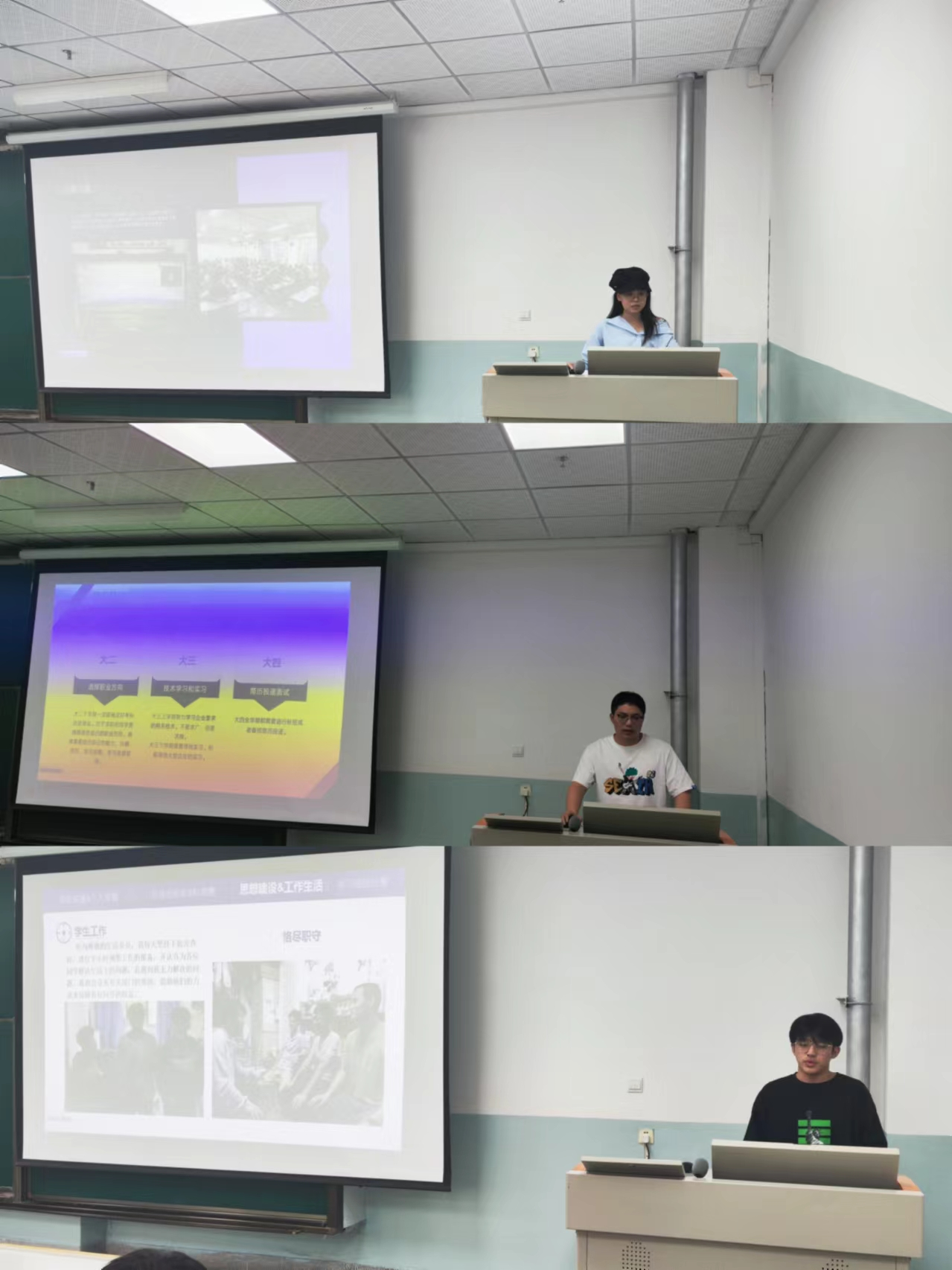 学院邀请到了机电学院被保送天津大学的喻戬同学、计通学院被保送北京邮电大学的潘婷同学以及签约北京达佳互联信息技术有限公司(快手)的余慧同学,他们分别从保研、科创和大学生综合成长、就业方面为大家讲述了自己的故事。他们结合自己的奋斗历程和成长成才经历,用一种幽默风趣的的方式和学弟学妹们分享了自己大学的学习经验,并在演讲的最后衷心的祝愿学弟学妹拥有一个精彩而又充实的大学生活。