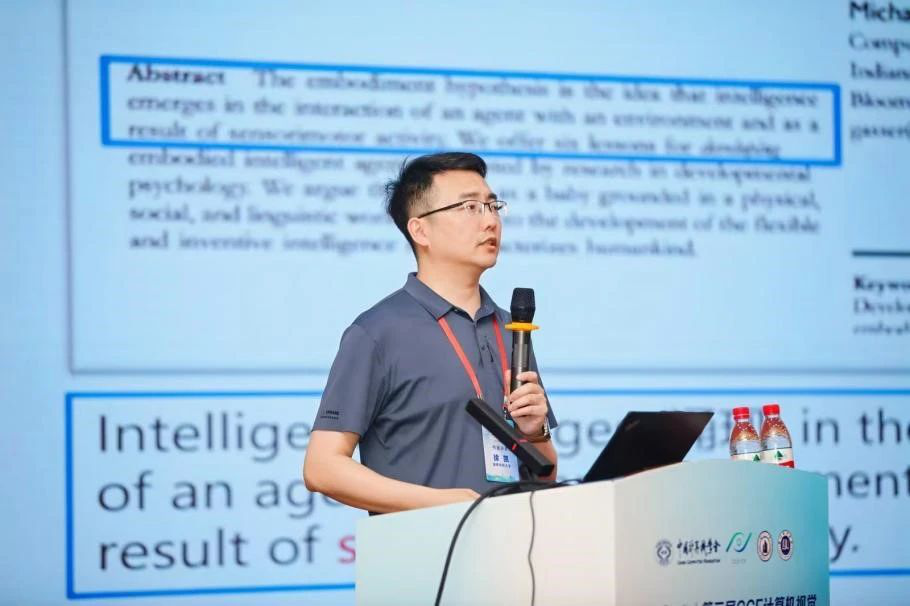 浙江大学求是特聘教授李玺教授以“多模态视觉结构学习”为题,清华大学代季峰副教授以“多模态基础模型研究”为题,哈尔滨工业大学左旺孟教授以“视觉生成与编辑技术研究”为题,国防科技大学徐凯教授以“融合三维感知与多模态大模型的具身智能”为题,清华大学黄高副教授以“面向视觉Transformer的高效注意力机制”为题,中国科学院自动化研究所王亮研究员以“多模态认知计算”为题,清华大学朱军教授以“扩散模型:不止于高维数据生成”为题,中国科学院计算技术研究所蒋树强研究员以“具身智能中的视觉导航:机理、方法与实践”为题,北京大学王鹤博士以“面向通用机器人的具身多模态大模型系统”为题,9位顶尖学者在2天的课程中,为学员们奉上了精彩纷呈的学术盛宴。为表达对讲者的诚挚谢意,CCF-CV专委会与承办单位精心设计制作了感谢牌并在报告现场进行颁发。