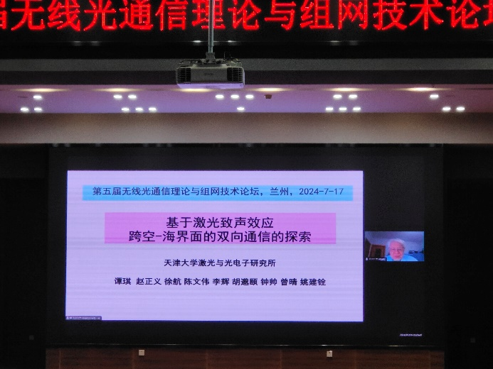 会议开幕式于7月17日上午在兰州理工大学图书馆106举行。开幕式由兰州理工大学计算机与通信学院院长冯涛主持,兰州理工大学副校长郑小平致欢迎辞,桂林电子科技大学王俊义教授作为下一届主办方致辞。大会报告由中国科学院院士、天津大学姚建铨教授作了题为《基于激光致声效应跨空—海界面的双向通信的探索》的报告,俄罗斯自然科学院外籍院士、西安理工大学柯熙政教授作了题为《无线激光通信系统模型》的报告,吉林大学胡贵军教授作了题为《基于模式分集的空间激光通信技术》的报告,重庆大学郭磊教授作了题为《无线光通信可靠传输与融合组网》的报告,浙江大学徐敬教授作了题为《水下无线光通信:样机开发与海试》的报告,复旦大学沈超研究员作了题为《面向高速可见光通信的激光器研究进展》的报告。