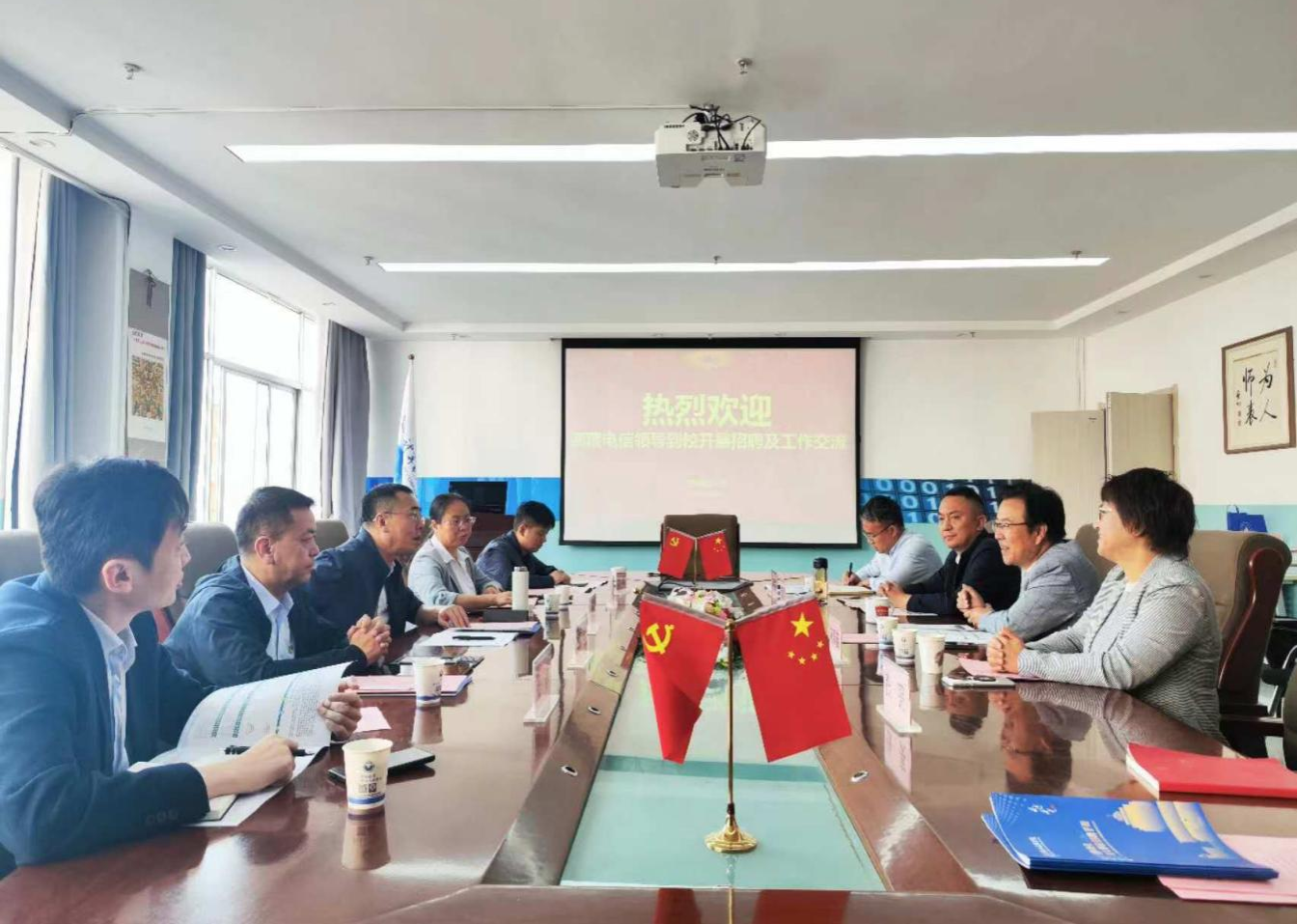 为进一步深化校企合作,促进2025届毕业生高质量充分就业,9月22日,中国电信西藏公司、中国通服四川设计公司来学院洽谈合作事宜并举行专场招聘。学院党委书记高国礼、学生就业指导服务中心副主任陈育苗、学院副院长张玺君、党委副书记来明展参加了交流活动。