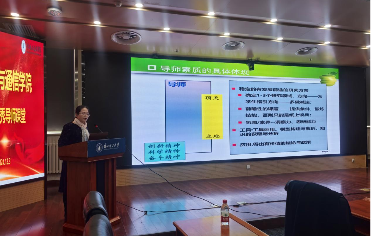 12月3日下午15:00,兰州理工大学计算机与通信学院在彭家坪校区图书馆104报告厅,开展红柳优秀导师经验交流会,主题为如何做合格的研究生导师。报告由兰州理工大学计算机与通信学院王惠琴教授主讲。