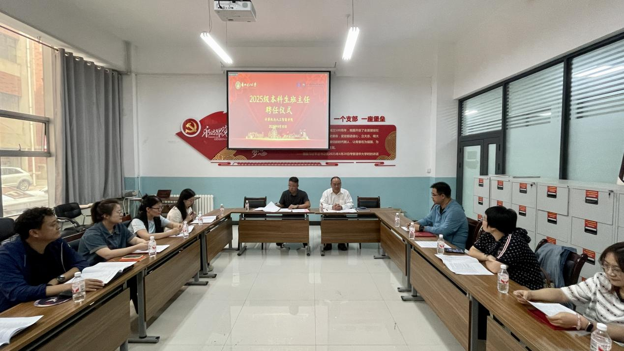 在第41个教师节到来之际,计智学院在彭家坪校区舒卷楼106室举行2025级新生班主任聘任仪式。学院党委书记郭备、党委副书记来明展以及2025级本科生班主任参加会议,会议由来明展主持。