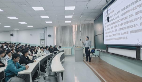 在各专业的讲座现场,气氛热烈。主讲老师结合专业特点和热门前沿科技,通过列举无人驾驶、智能医疗、智慧城市、AI+、大语言模型和大数据分析等鲜活案例,生动阐释了专业知识在实际场景中的应用与巨大发展潜力,极大激发了同学们的学习兴趣和探索欲望。老师们通过剖析各专业核心知识体系和能力素质要求,帮助新生勾勒知识地图和专业课学习路径。同时,引导同学们要将专业知识的学习和国家发展需求相结合,将“小我”融入“大我”,用扎实的理论基础、强烈的创新意识和卓越的实践能力为实现中华民族的伟大复兴贡献青春力量。