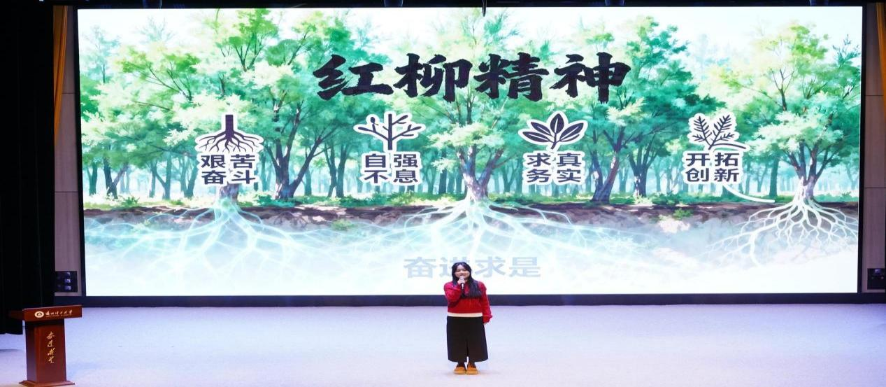 本次比赛以传承和弘扬“艰苦奋斗、自强不息、求真务实、开拓创新”的红柳精神为主题。决赛现场,选手们通过独诵、对讲、舞台剧等多种形式,艺术化再现了学校106年办学历程中的感人故事。从能源与动力工程学院选手讲述的四代师生西迁耕耘的动人篇章,到理学院选手展现的以数理之刃服务国家战略的科研担当;从外国语学院选手回顾的从“一间教室”到服务“一带一路”的特色发展之路,到计算机与人工智能学院选手诠释的扎根西北、科技报国的初心使命,每个作品都凝聚着学子们对校史的深刻理解与时代诠释。