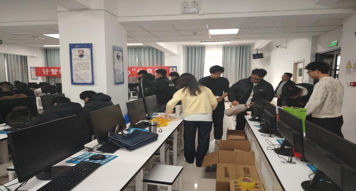 精心筹备暖意浓。为助力学子逐梦,计智学院提前谋划、细致部署,将两间宽敞明亮的实验室作为“考研加油站”,并备齐咖啡、热茶、糖果、法式面包及热水等暖心物资。20号天光初亮,辅导员和学生党员就开始了热心服务,休息区的空气中弥漫着咖啡的醇香与热茶的氤氲,每一处细节都凝结着学院的殷切期盼:愿这方小天地能成为考生疲惫时的“能量补给站”,助他们以最佳状态奔赴考场。