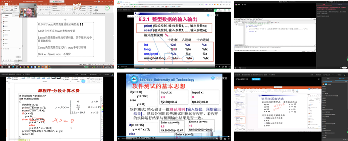 公共课部各任课教师,精心准备教学资料,态度认真,系部老师的教学活动主要通过腾讯课堂教学直播开展,并且充分利用线上教学优势,点播,讨论,在线答疑多措并举以保证教学效果。公共课部的教学模式是通过学习通发布作业和视频,让学生进行课前预习与课后复习,通过直播互动讲解知识,通过QQ群进行答疑,学生满意程度很高,图6展示了各位老师的直播课堂。