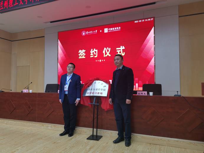 近日,兰州理工大学计算机与通信学院在甘肃省通信服务公司建立的教学实习基地正式揭牌,计通学院张玺君副院长和甘肃省通信服务公司职工培训中心王宏俭总经理出席了签约仪式。