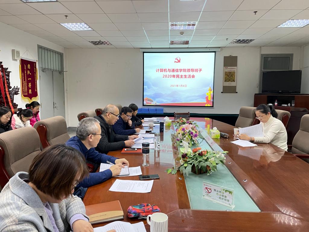 2021年1月8日上午,计通学院党委在学院会议室召开了2020年度党员领导干部民主生活会,党委常委、副校长曹洁同志出席会议并进行指导,学院党委领导班子全体成员参加会议,五级职员、党支部书记列席会议。会议由学院党委书记曾贤虎主持。