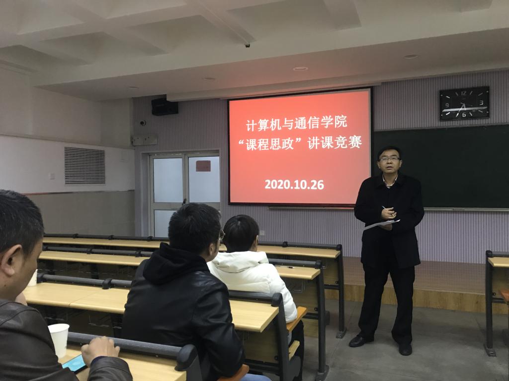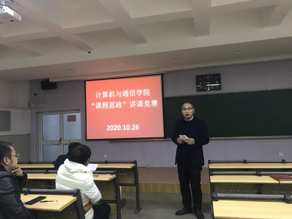为落实高校思想政治工作会议和全国教育大会精神,进一步推进课程思政建设,推动广大教师切实履行职责、担当起“课程思政”主体责任,10月26日下午,计算机与通信学院举行了首届“课程思政教学竞赛”。来自全院各系部的7名教师参加了此次教学竞赛。经过激烈角逐,前三名教师代表学院参加学校比赛。