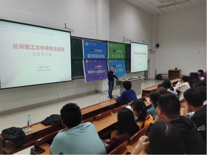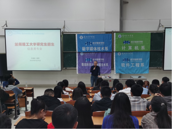 为更好的提高研究生招生宣传效果,鼓励优秀考生报考我校,9月29日,计通学院院副院长年福忠教授走进兰州文理学院数字媒体学院,展开了研究生招生宣讲活动。兰州文理学院数字媒体学院院长李恒杰教授以及软件工程、数据科学与大数据技术、数字媒体技术专业有考研意愿的学生200余人参加了此次会议。