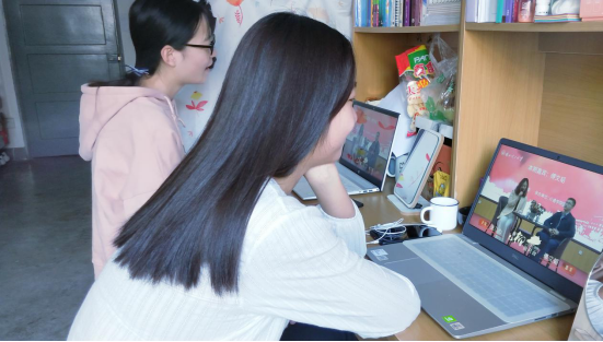 同学们观看直播