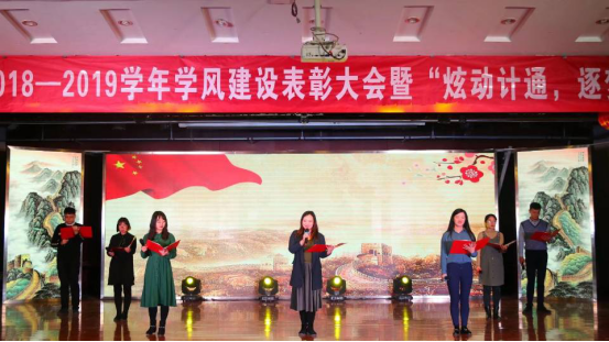 表彰大会在庄严的国歌声中拉开序幕,工作人员宣读表彰文件,各位领导嘉宾为获奖个人、集体颁发证书,合影留念。随后,冯涛致新年贺词,向全体师生表示新年的问候。