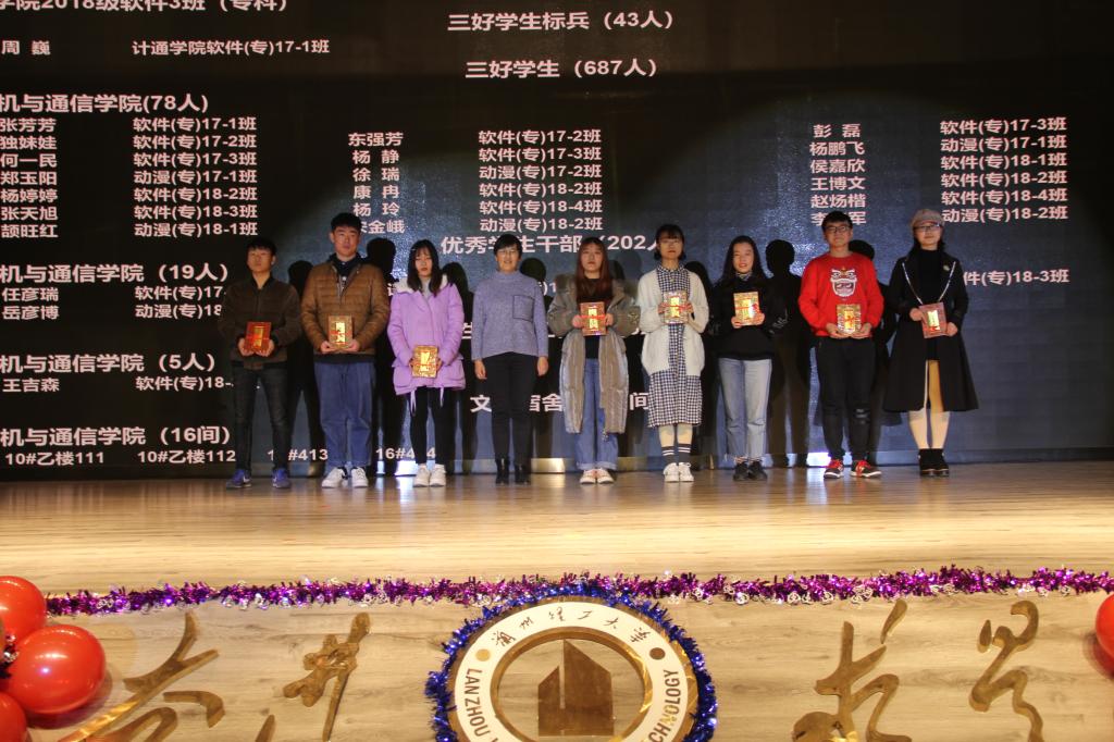 为加强学院学风建设,为鼓励过去一年在各方面取得优异成绩同学。正值新年来临之际,学院于2019年12月27日晚在兰工坪校区大学生活动中心隆重举行了软件学院2018-2019学年学风建设表彰大会暨迎新晚会。