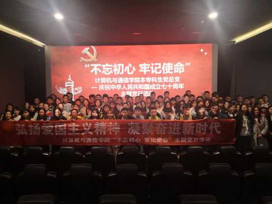 在庆祝中华人民共和国成立七十周年之际,为弘扬爱国主义精神,激发学院广大师生的爱国热情、强国之志,凝聚奋进新时代的磅礴伟力,10月10日至10月20日,计算机与通信学院党委分批组织学院党员师生、党员干部观看“不忘初心、牢记使命”主题教育优秀影片,为主题教育汲取养分。