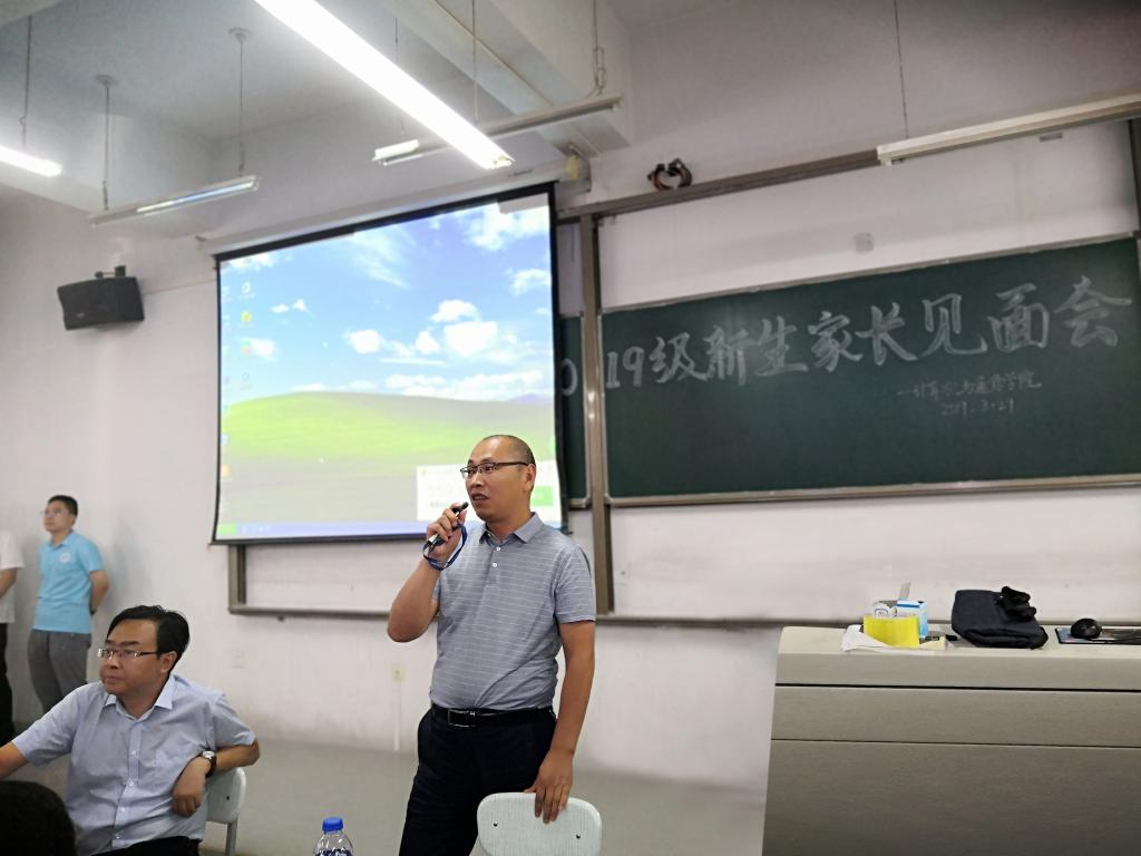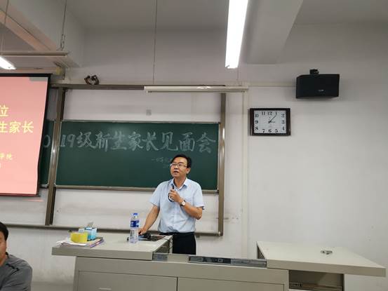 冯涛院长首先对家长们的到来表示热烈欢迎,对考入我校的新生表示祝贺。接下来他详细介绍了学校、学院的历史沿革,专业设置、师资力量、研究成果、3+1培养模式等内容;白杨副书记从学生工作队伍、学生日常管理和就业情况、四六级通过率等方面进行了介绍;最后,曾贤虎书记针对学院和学校未来发展规划进行介绍,他鼓励学生大胆创新、敢为人先,建议家长与学校共同携手,促进孩子成长、成才。接下来学院领导、老师和家长展开了互动答疑环节,家长针对关心的问题积极提问,得到在座领导和老师的详细解答。至此,新生家长见面会圆满结束。