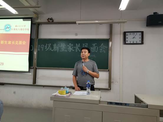8月29日下午三点,计算机与通信学院在彭家坪校区蔚云楼305教室举行了2019级新生家长见面会。学院党委书记曾贤虎、院长冯涛、副院长薛建斌、党委副书记白杨、全体辅导员、新生班主任及230余名新生家长参加会议。会议由学院党委副书记白杨主持。