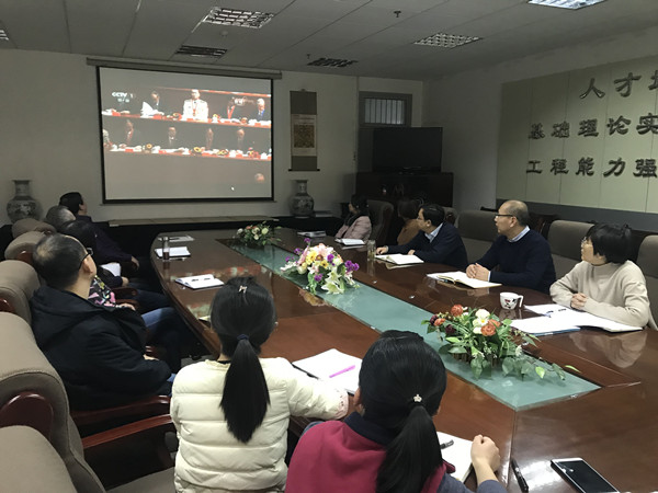 12月18日上午10时,庆祝改革开放40周年大会在人民大会堂隆重举行。中共中央总书记、国家主席、中央军委主席习近平出席大会并发表重要讲话。根据学校安排,计通学院师生第一时间通过多种途径、多种形式,观看了大会盛况,热议习近平总书记在庆祝改革开放40周年大会上的重要讲话。学院领导、机关干部在学院会议室观看了庆祝大会的现场直播。各系部组织教师在教研室集中收看。学生干部、班级学生在团学办公室、教室集中收看。