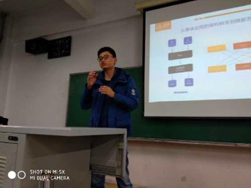 其次,演示介绍企业的开发项目,并和同学们分享目前最新软件开发技术“微服务+”架构技术体系开发应用,提前了解知晓未来主流的开发技术,新技术发展趋势。现场带大家演示并分析了“一款小游戏”(飞机大战)的软件编程实现过程,让我们感受平生所学的Java,数据库等知识不仅仅只是用来死记硬背,应付考试拿学分的,还可以像玩一样来学技术,让我们明白学校所学专业知识应该如何综合应用。