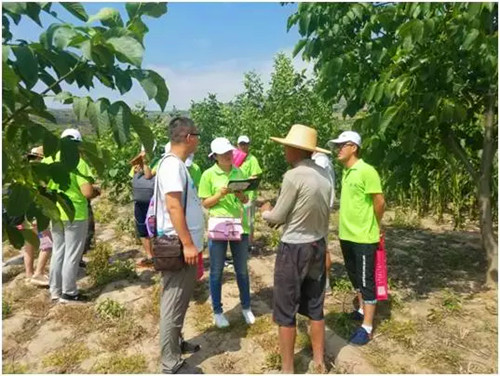 接着我们走进了商贸流通活跃的金山镇,跟随工作人员,我们参观了当地的农场花椒种植园和苹果种植园,在交谈中我们了解到对于小的种植户,大都采用传统售卖方式,而对于种植大户,大都采用网络销售或出口买卖,并取得了一定的效益,这对当地的电商发展起到了一定的推动作用。