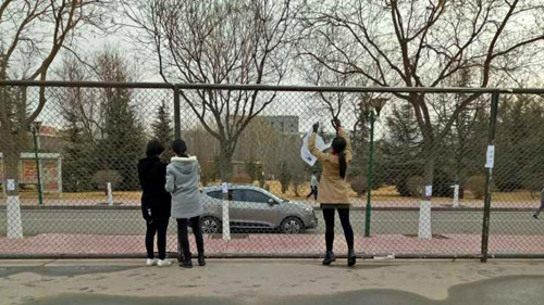 同学们并没有因为天气的寒冷而减少劳动的热情,每个人都卖力的工作着,以自己的行动纪念一位普通又平凡的战士。他们将围栏上废旧的胶带等杂物撕下来,统一收集起来扔掉。经过大家齐心协力的工作后,整个操场的围栏都变得干净美丽,最后大家都合影留念。