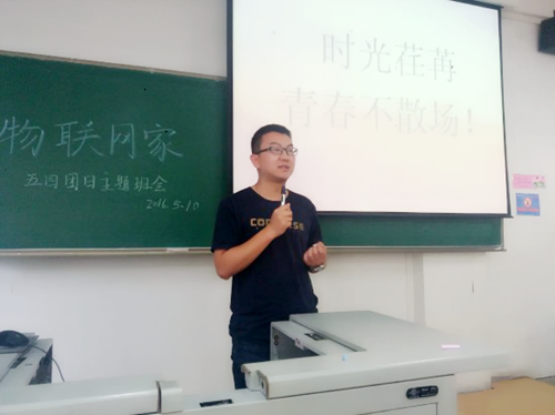 2016年5月10日下午,物联网一班在西校区1号楼102教室举行了“5.4爱国主题班会”,参加本次活动的有计算机与通信学院团委书记刘竞雄老师和2015级物联网一班全体同学。