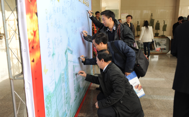 与会代表在文化墙上签字