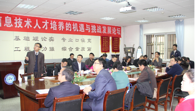 作为甘肃省八大战略性新兴产业之一的信息业在所有科学技术发展中起着带头作用,同时社会对信息通信技术学科的需求也是非常大的。我们要适应环境变化,产权结合,调整思路,才能在信息学科上培养出高质量的研发人才。同时也要注意产业、企业的氛围对人才的影响,按照岗位需求以及对学生的要求,来制定和设置培养方案、课程,让学生在今后的工作中能更好地体现出自己的优势。我们要始终抓住互联网时代对信息人才的需求,将我学院建设成主导高就业率的学院。在学院的平台建设上,注重方向,注重人才,注重创新,与地区经济结合,满足市场需求,做好当前,为下一步打好基础,做好铺垫。学科发展,人才培养都离不开团队,离不开方向,离不开平台,我们要把团队建设放在首要地位,打造具有学校特色的团队,从而营造良好的学术氛围。我们寄希望于培训机构对我学院的发展和人才的培养继续给予支持和关注,用最先进、最有特色的平台支持我们的发展和建设。