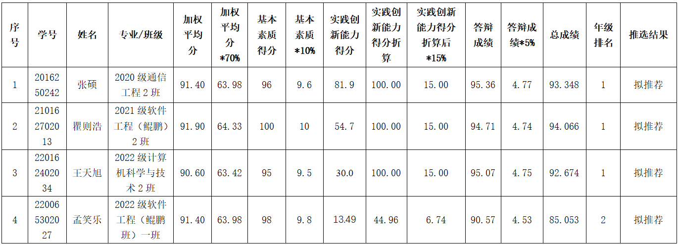 根据学校《关于开展2023年国家奖助学金评定工作的通知》的要求,经过个人申请、年级评议、辅导员推荐、学院初审,学院公开答辩,现推荐2020级张硕、2021级瞿则浩、2022级王天旭 、2022级孟笑乐四名同学申请国家奖学金。公示时间为2023年9月22日—2023年9月28日。