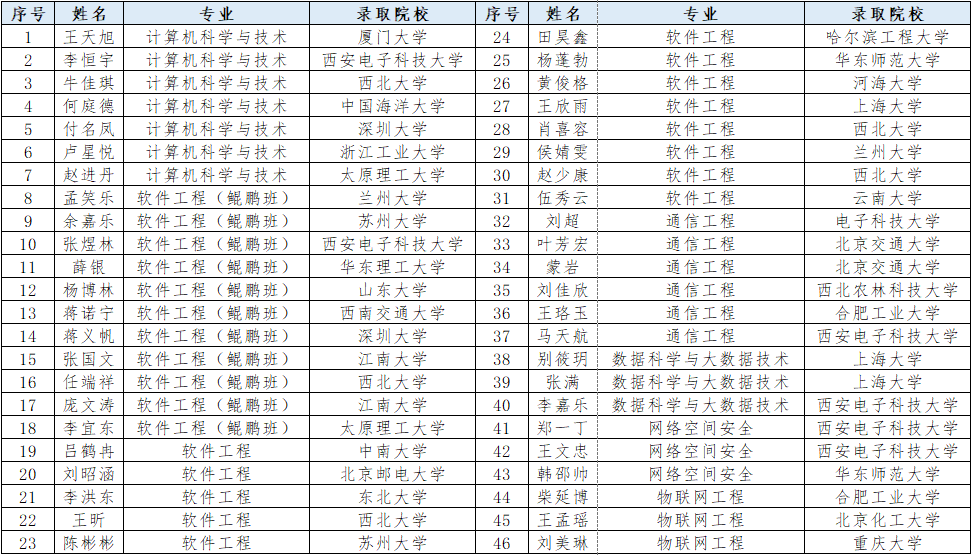 学院2026届本科毕业生共46位同学成功推免,下面分专业进行展示,具体展示请下载附件进行查看。